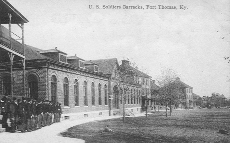 The Fort Thomas Mess Hall was built in 1891 at a cost of $20,407.05. It was Building #26. The bricks used were made at a brick yard on land where the Highlands High School now stands. The slate roof, red-tile floor, and the regularly spaced, large round arched windows are all original.
